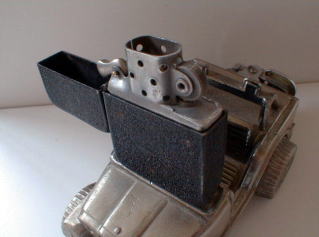 同じくケースにも初めてZIPPOの刻印が打たれるようになります。オイル止めのタバコ型フェルターも46年以降のフリントスクリュー用の穴がまだありません。